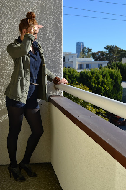 Romper: Rag and Bone, Heels: Donald J Pliner, Bangles: Boutique and Jewelmint, Jacket: Charlotte Russe, Belt: Zara